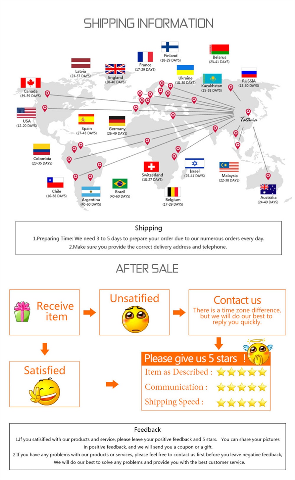 - Si vous avez ne pas Recevoir le produit dans le délai de garanti (45 jours hors délai de traitement compris entre 2 et 5 jours), vous pouvez demander un remboursement ou un renvoi.